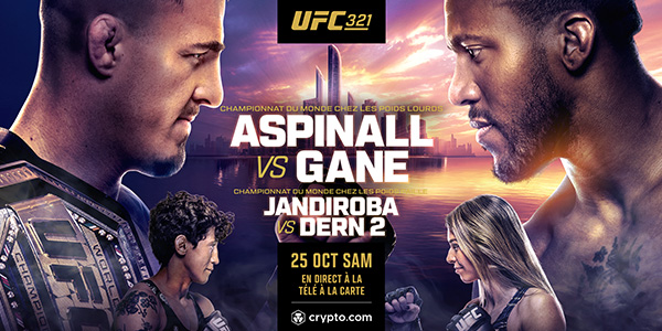 Le championnat du monde des poids lourds de l’UFC sera en jeu le 25 octobre à l’Etihad Arena d’Abu Dhabi. Tom Aspinall y défendra pour la première fois son titre de champion incontesté contre Ciryl Gane en combat principal de l’UFC 321. L’Anglais Aspinall a remporté ses trois dernières victoires par K.O., notamment face à Curtis Blaydes pour le titre intérimaire. Cet automne, il aura un défi de taille face à la star française et ancien champion intérimaire Gane, qui est plus déterminé que jamais à mettre la main sur le titre de champion incontesté à suite de ses victoires consécutives sur Serghei Spivac et Alexander Volkov.