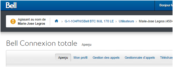 Si vous êtes un administrateur, vous êtes responsable de l’établissement des utilisateurs et de la configuration des paramètres généraux et des fonctionnalités de Bell Connexion totale. Pour ce faire, vous devrez ouvrir une session dans le portail Bell Connexion totale au moyen de votre nom d’utilisateur et de votre mot de passe d’administrateur que vous avez reçus par courriel.
