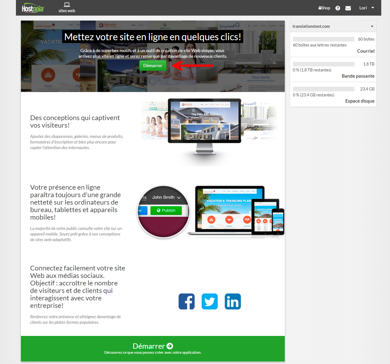 Accédez à l’outil Créateur de présence en ligne afin de commencer la création de votre site web réactif.