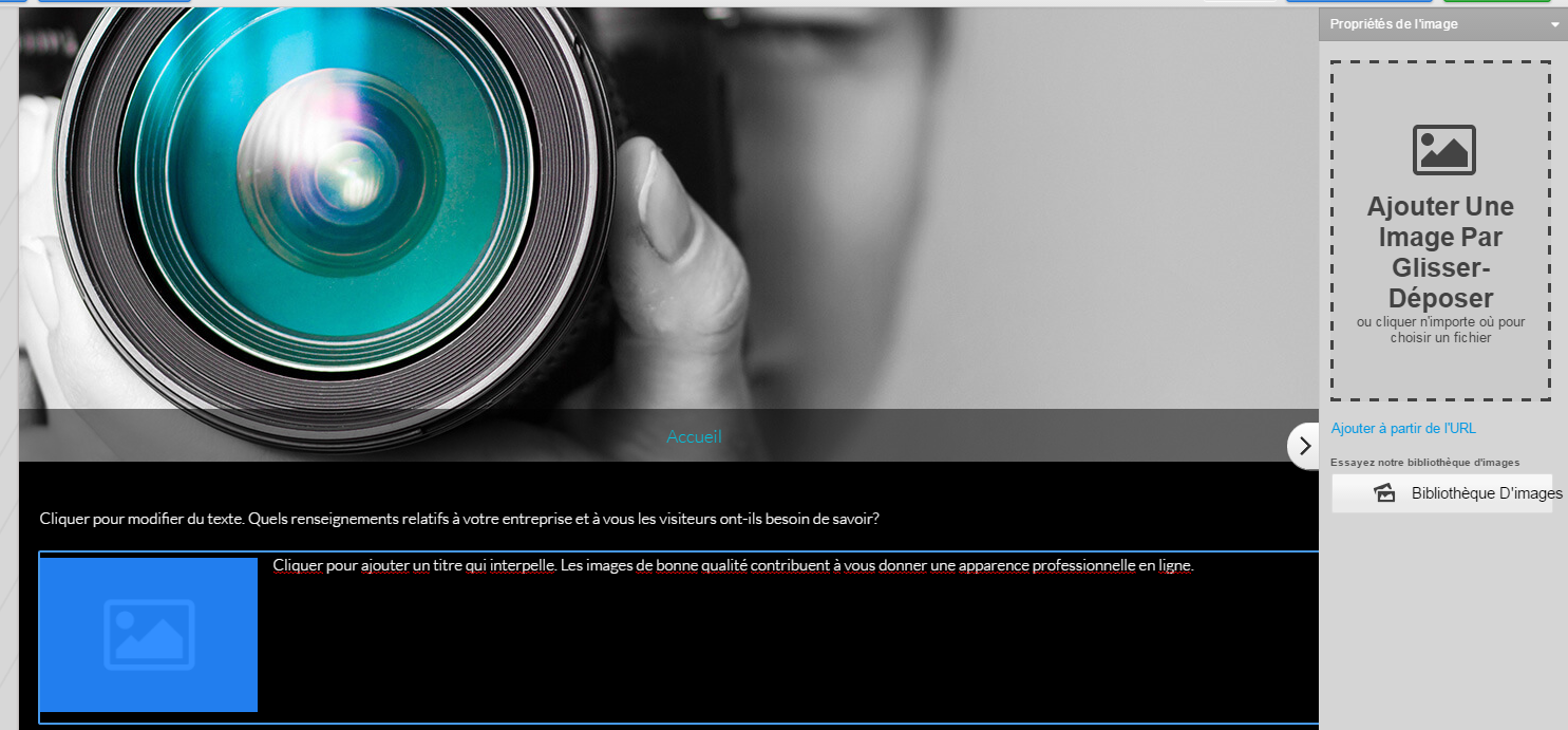 Vous pouvez également téléverser votre logo; l’outil l’insérera automatiquement dans votre nouveau site Web. Résolution recommandée pour les logos : 245 x 150 pixels.