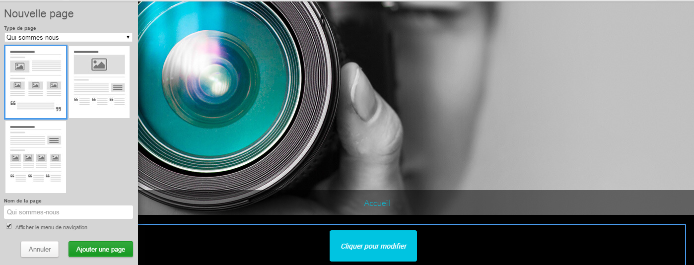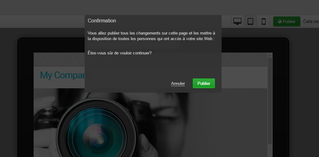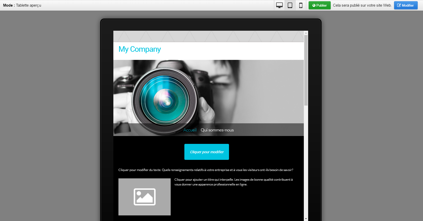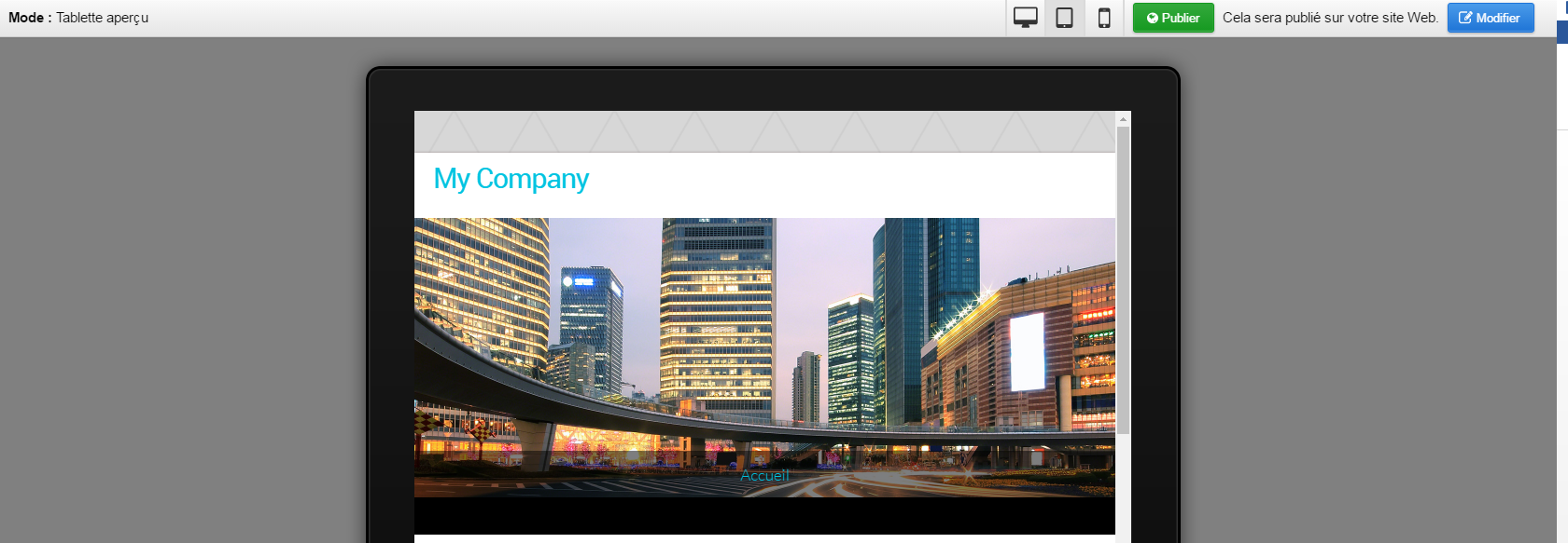 Vous pouvez cliquer en tout temps sur [Aperçu] pour voir à quoi ressemblera votre site web sur un ordinateur, sur une tablette ou sur un appareil sans fil. Vous pouvez retourner à la page d’édition en tout temps en cliquant sur [Modifier].