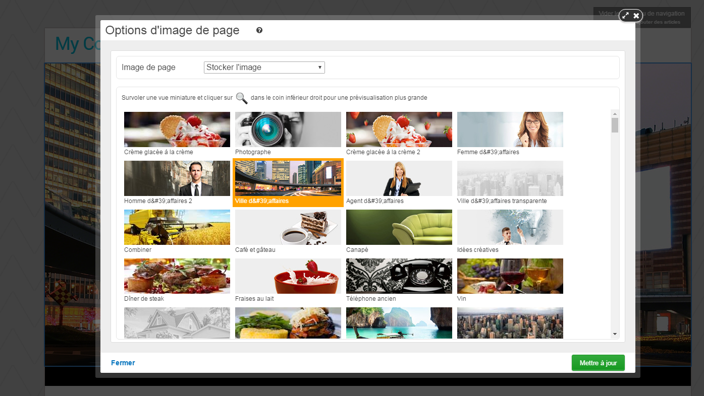 Si vous souhaitez la personnaliser, cliquez sur l’image de votre page d’accueil, le point focal de votre page d’accueil. Vous ferez apparaître la boîte d’options de l’image de la page dans laquelle vous pouvez choisir parmi une variété d’images préformatées de haute qualité.